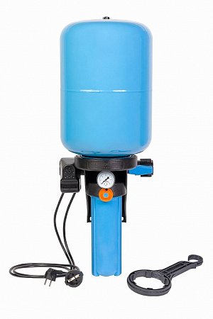 * Универсален - подходит к любому насосу. Можно изменить направление потока воды через КРАБ, повернув бак на 180 градусов и переустановить манометр и реле давления на лицевую сторону.
