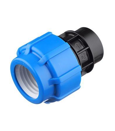 Муфта компрессионная с внутренней резьбой Российского производства ТПК-АКВА применяется для соединения полиэтиленовых труб с другими компрессионными фитингами, имеющих наружную резьбу, с шаровыми кранами, переходниками. Муфта компрессионная с внутренней резьбой имеет шаг резьбы, соответствующий стандартному шагу стальной резьбы, что позволяет ее использовать для перехода с полиэтиленовой трубы на стальную или металлическую запорную арматуру. Используется компрессионная муфта в внутренней резьбой с трубами для питьевого или технического водоснабжения с рабочим давлением до 16 атмосфер. Обладает высокими эксплуатационными качествами, имеет невысокую стоимость.