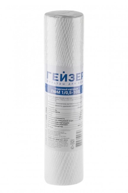 Картридж ПФМ-Г 1/0,5 10SL предназначен для очистки воды от нерастворимых примесей. В отличие от PP обладают градиентной пористостью: диаметр поры уменьшается при движении воды внутрь картриджа, позволяя работать всему объему фильтрующего материала. У картриджей есть модификации для горячей воды. Не восстанавливаются и не регенерируется.