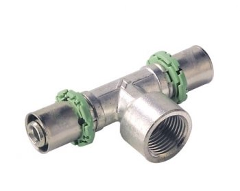 Пресс-фитинг тройник предназначен для разветвления потока воды на два направления. Имеет два выхода для соединения металлопластиковых труб диаметром 16 мм методом опрессовки и один выход с внутренней резьбой 1/2" (16 мм). Вид фитинга: тройник переходной Материал: латунь Диаметр металлопластика, мм: 16 Диаметр резьбы: 1/2" Давление max (бар): 10 Температура рабочей среды: от -20 до +95 oC
